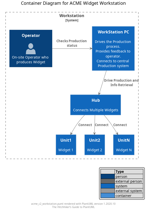 System(AcmeWorkStation1, "WorkStation1", " Production setup for a group of widgets")