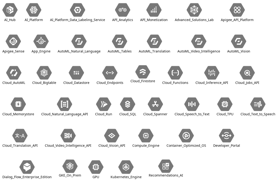 PlantUML Stdlib Overview:The original icon set is from https://cloud.google.com/icons (which says "We are currently in the process of updating our product icon set.")